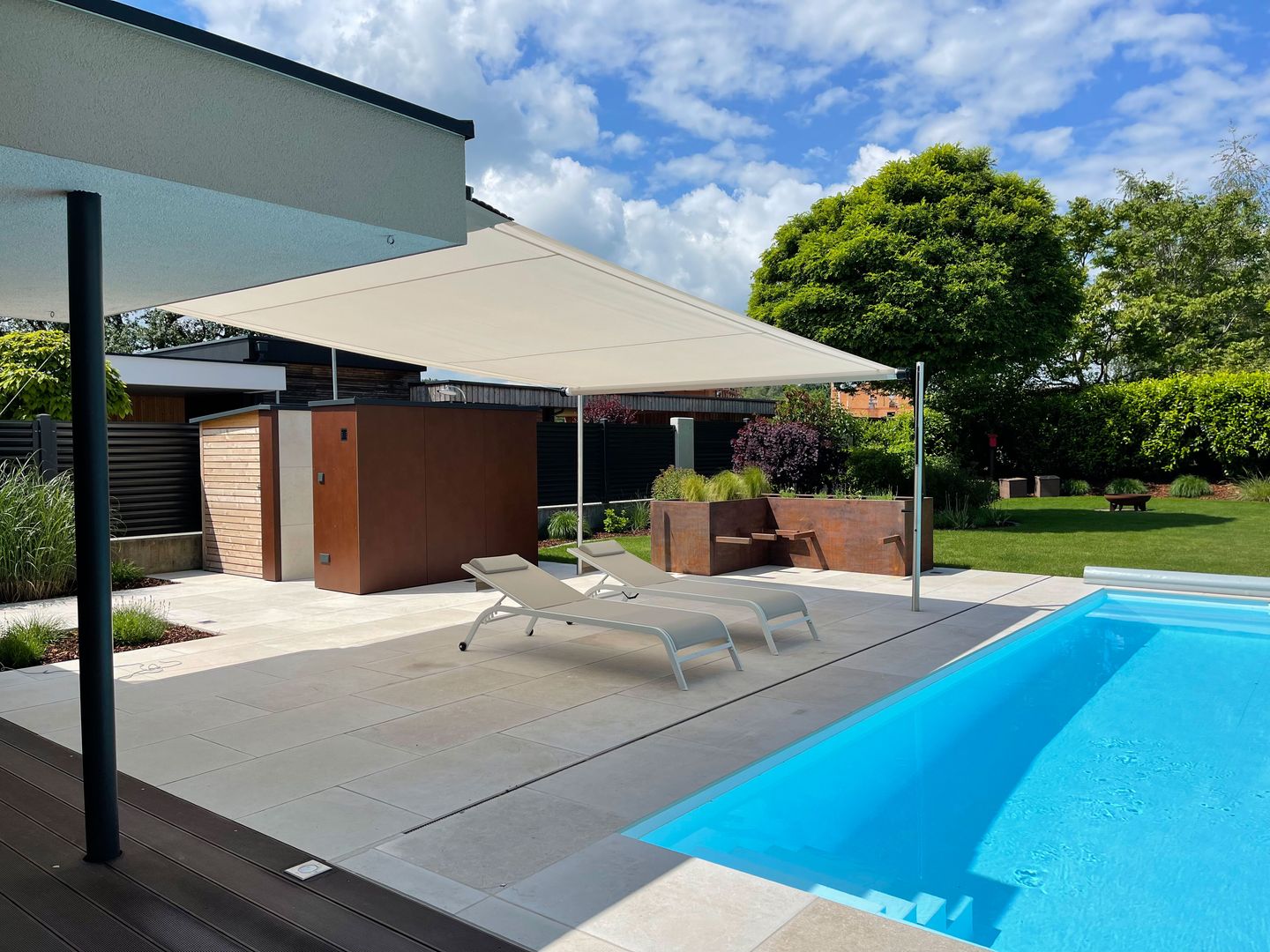 Sonnensegel sind die trendige Alternative zur herkömmlichen Markise. Sie vermitteln Urlaubsgefühle und benötigen vor allem keine Stellfläche. Sehr oft als Segeldreieck ausgeführt, begeistern Sonnensegel mittlerweile auch aus witterungsfesten Stoffen in quadratischen, eckigen und maßgeschneiderten Formen und Größen. Sonnensegel können an der Hauswand oder an freistehenden Edelstahlstangen eingesetzt werden. Die Segel können horizontal oder schräg gespannt werden und dienen damit neben dem Sonnenschutz auch dem Sicht- und Regenschutz. Farblich sind der Fantasie keine Grenzen gesetzt: Sonnensegel gibt es in allen beliebigen Sommerfarben.