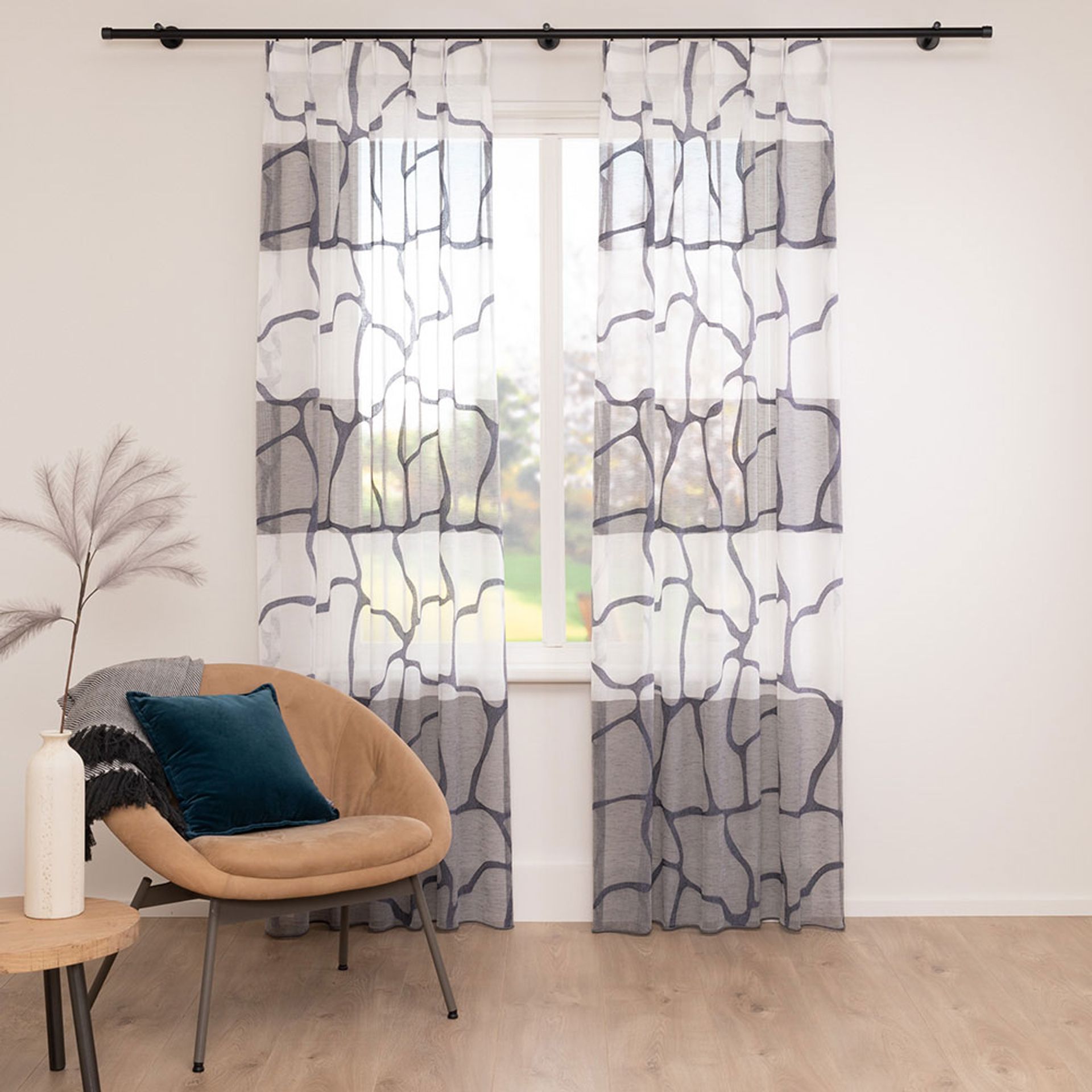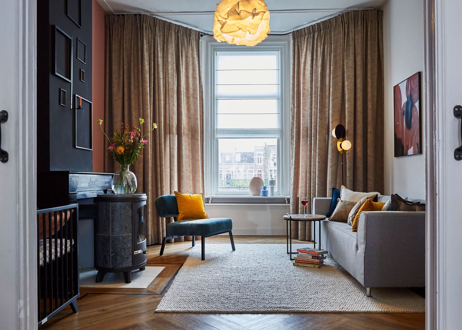 Raumhohe Vorhänge schweben entweder knapp über dem Boden oder liegen auf. Die schwebende Variante lässt sich besser sauber halten. Die aufliegende Gardine gibt einem Raum einen lässigen Chic, ist aber beim Staubsaugen oder Wischen unpraktisch.